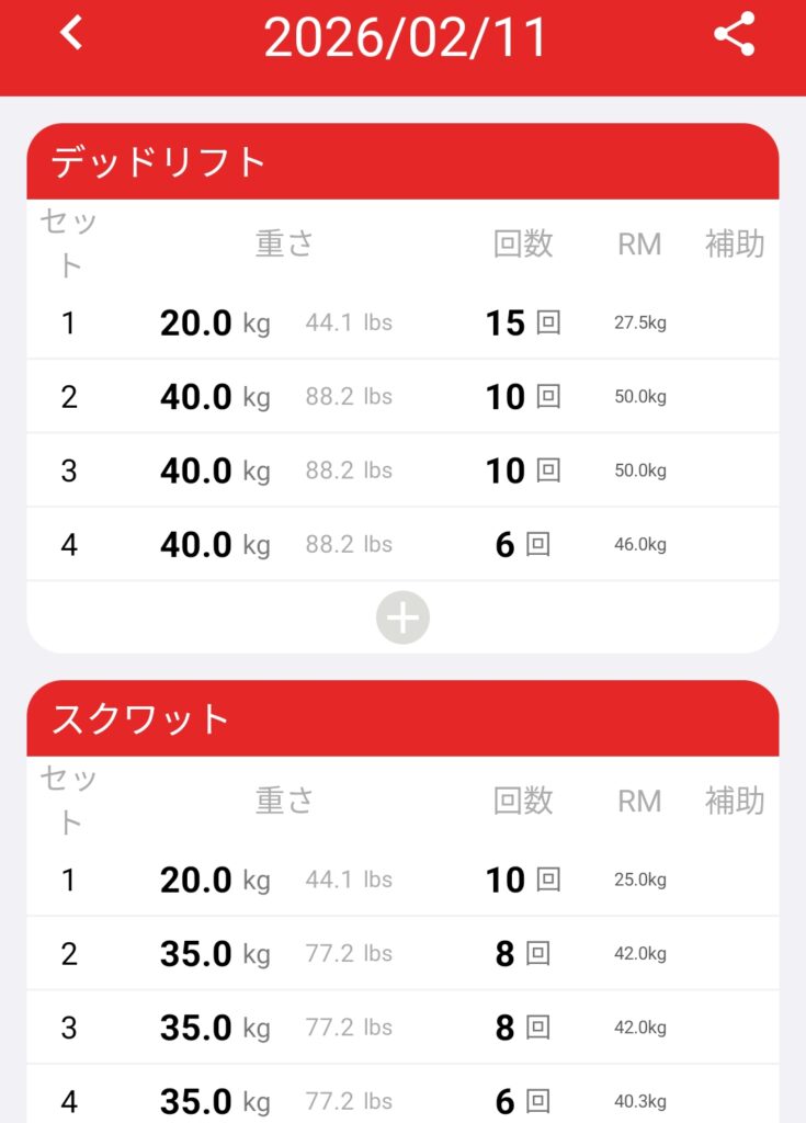 昨日仕事が忙しく、その疲れが残っていたのかなぁ。デッドリフトもスクワットも、回数が落ちました。