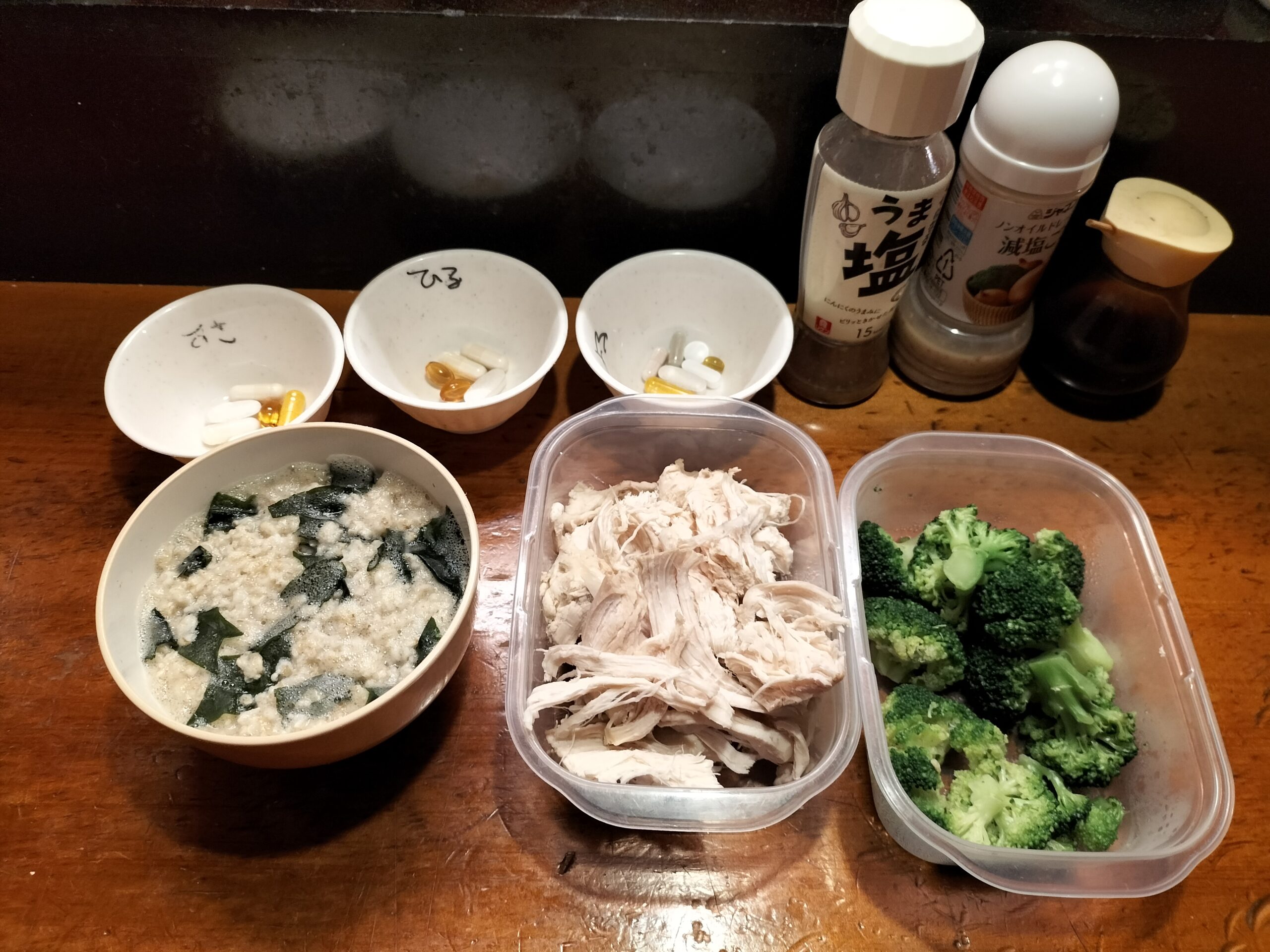 3度の食事のタンパク質補給は、鶏のムネ肉。