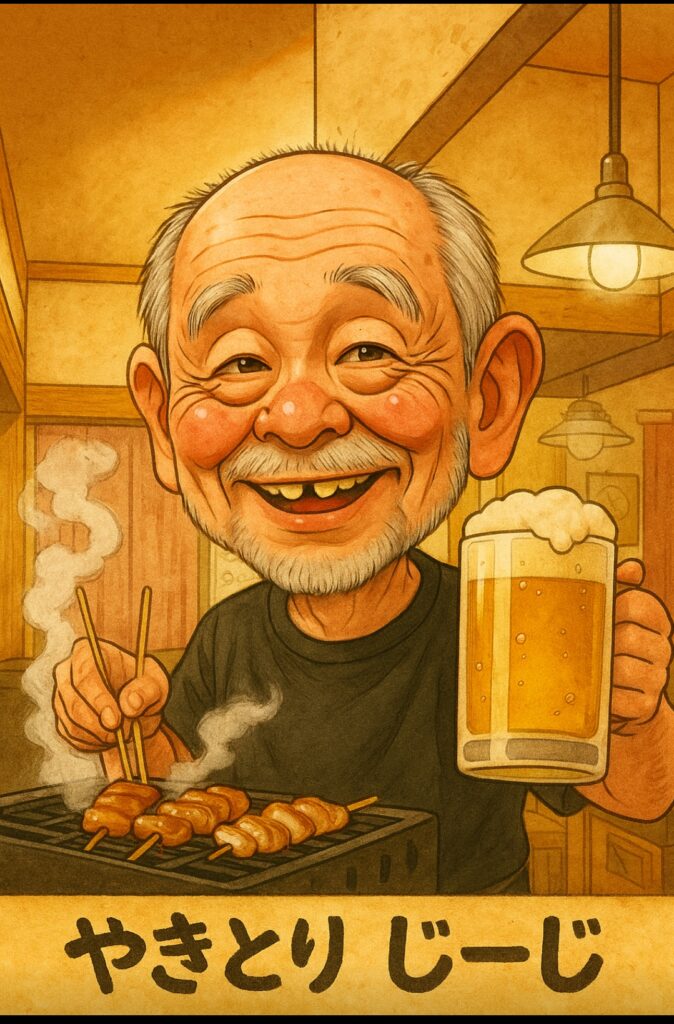 よ〜、大将。ビールちょうだい!!とか焼